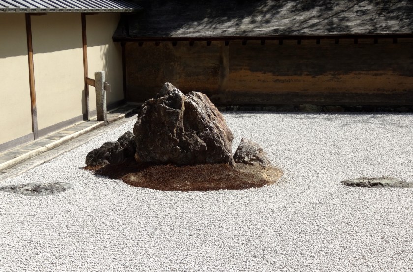 Poco lontano nei rigorosi ambienti del Riogen ji pochi monaci e seguaci dello zen, tra cui molti occidentali, si sottopongono a dure meditazioni restando seduti per ore a contemplare un muro bianco.