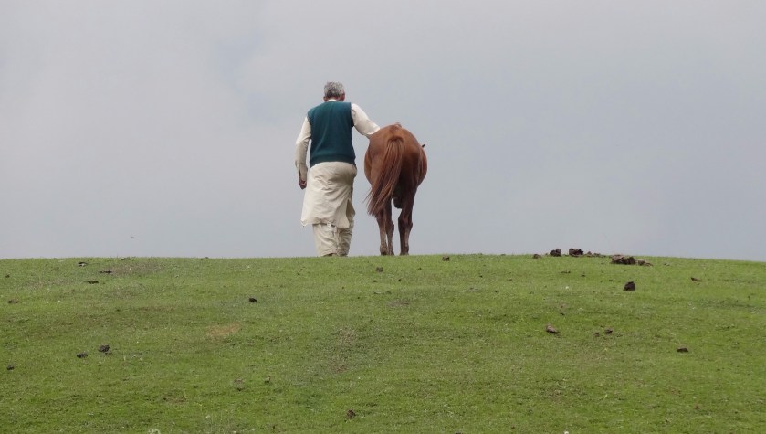 Avevo chiesto a Altaf, il giovane e fervente musulmano che si era offerto di, farmi più che da guida, da interlocutore appassionato, di poter visitare un importante santuario sufi nascosto tra le montagne del Kashmir. Il santuario, dedicato alla memoria dello Sheikh Nooruddin Noorani, popolarmente conosciuto come Alamdar e Kashmir, era stato appena ricostruito dopo essere stato distrutto da un attentato. I sufi non sono molto amati dai musulmani massimalisti che rimproverano loro il culto dei santi, la richiesta di grazie e miracoli e tutte le superstizioni abolite dal messaggio limpido e innovatore del Profeta. Trovandosi a pochi chilometri dal confine con il Pakistan queste valli sono state quindi molto esposte ad incursioni e attacchi di milizie varie. Prima di farmi visitare questo luogo, ritornato a essere il principale centro di devozione della regione, Altaf mi volle però accompagnare in un alpeggio, un luogo di montagna che portava nel nome, Yusmarg, una traccia della presenza di Gesù (Issa o Ius) in queste terre. Chi ha letto il post su Gesù l’Esseno può facilmente comprendere a cosa mi riferisco. I grandi prati, i cavalli, il silenzio, sarebbero stati ideali per un’esperienza di contemplazione della natura se non ci fossero stati dei lavori in corso per l’ampliamento della strada, che riempivano la valle di suoni, ruggiti, vibrazioni inopportune. Ci fermammo così per pranzo in un luogo appartato. In realtà Altaf aveva organizzato un ricco un picnic a base di specialità locali allestito sul pendio di una collina che raggiungemmo guadando un limpido torrente. Al cantiere lavoravano parecchie persone e il rumore di martelli pneumatici, ruspe in movimento, autocarri, asfaltatrici, rendeva quel luogo meno affascinante di quanto lo sarebbe stato se libero da quella cacofonia costante.