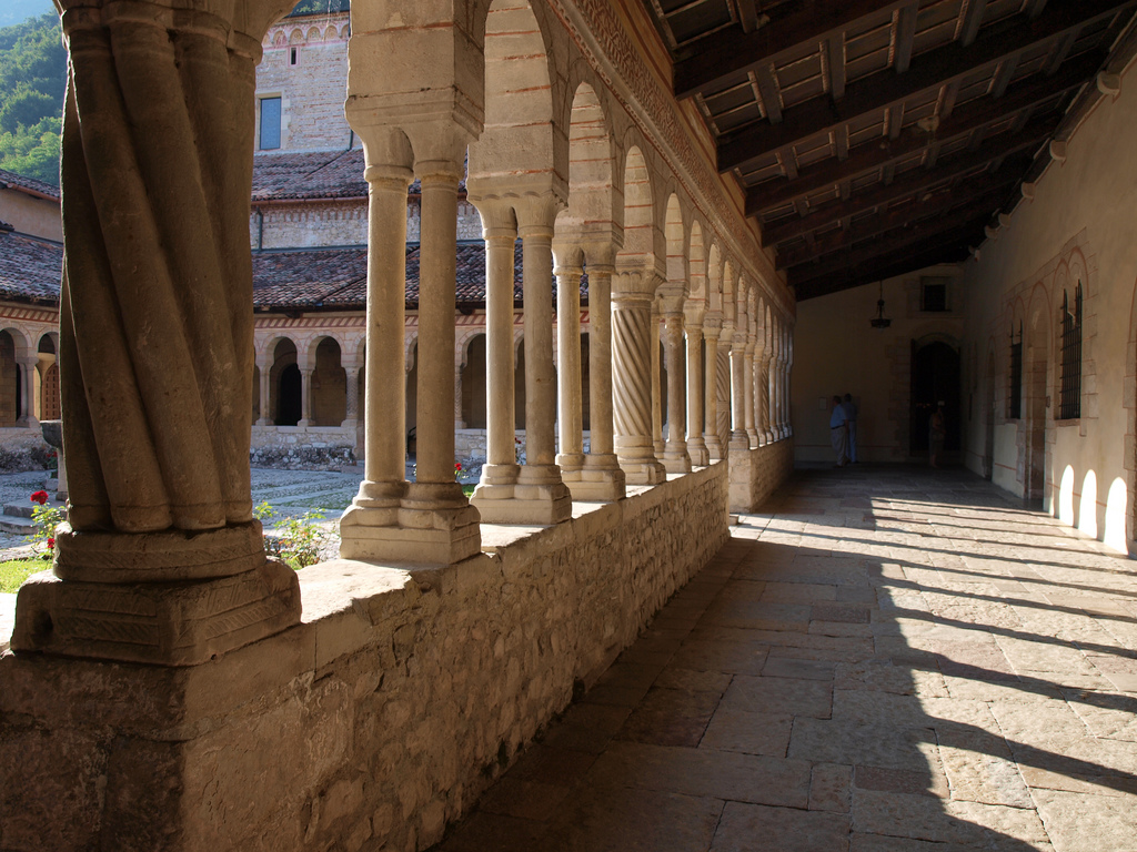 Le abbazie cistercensi hanno sicuramente un feeling particolare con i chiostri e l’abbazia di Follina, presso Treviso, una delle tante figlie dell’abbazia di Chiaravalle in Italia (vedi link) non fa eccezione. Anche se occupata ora da un’altra congregazione religiosa (Servi di Maria) l’abbazia ha mantenuto le atmosfere e il fascino delle origini, malgrado i numerosi interventi di restauro subiti nel corso degli anni. L’elemento di maggior rilievo è senza dubbio il chiostro, elegante spazio con belle colonnine binate, riportato alle sue originarie forme duecentesche, e che ha al centro una fontana. Sereno.