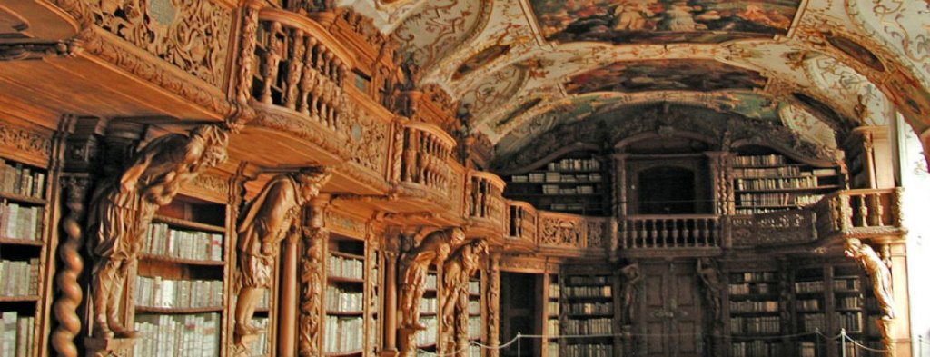 Durante il XVII e il XVIII secolo però, specialmente nei paesi dell’Europa Centrale nel periodo della cosiddetta Controriforma, assistiamo a un vero e proprio fervore costruttivo e creativo che genera alcuni dei più spettacolari esempi di biblioteca, intesa non solo come luogo funzionale ma anche bello, che oggi si possono ammirare. Il programma di restaurazione religiosa, artistica e culturale intrapreso dai governi dei Paesi cattolici (Impero Austro Ungarico, Regno di Baviera, Polonia, Svizzera Centrale) mette le biblioteche monastiche al centro del proprio percorso. Alcune di queste biblioteche, pur essendo state fisicamente conservate, sono state secolarizzate (quella dell’abbazia di san Gallo in Svizzera su tutte) e quindi sono diventate simili a musei. Io però, come sempre in questo blog , parlo solo di abbazie ancora vive e abitate dai monaci. Per questo i suggerimenti che trovate qui sotto sono riferiti a complessi attivi che si trovano in Austria, Germania, Repubblica Ceca. Le cinque che vedete non sono certamente le uniche. Le ho selezionate perché ciascuna di loro ha un qualcosa di particolare e perché si possono anche unire in un itinerario speciale per bibliofili e non solo, nel cuore dell’Europa. Per chi non è sensibile al fascino dei libri ricordo che tutte queste abbazie hanno anche uno shop ben fornito dove si trovano non solo libri ma anche interessanti offerte di prodotti alimentari e “alcolici”, eleganti caffè e ristoranti che possono essere proposti anche a eventuali partner o amici meno suscettibili al fascino dei libri antichi.