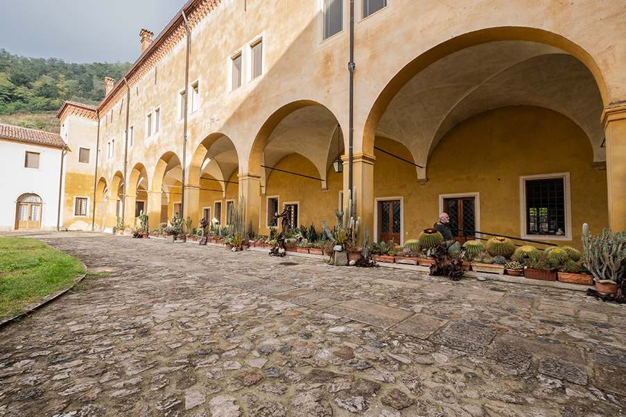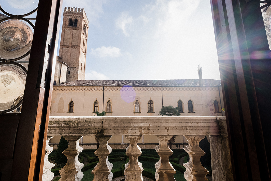 Quando si imbocca la strada tra i vigneti che porta all’abbazia si ha l’impressione di dirigersi verso una piccola pieve di campagna piuttosto che verso una grande abbazia benedettina. Il campanile merlato della chiesa svetta su edifici di cui non si riesce a cogliere l’ampiezza anche perché l’abbazia non sorge in posizione elevata. Soltanto avvicinandosi le dimensioni del complesso si svelano e Praglia ci appare nella sua nobile e discreta grandezza.
