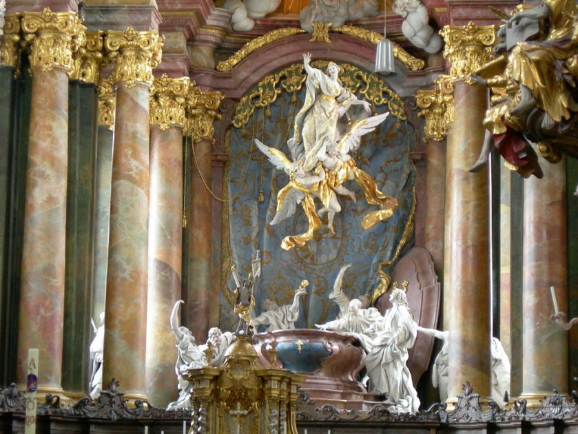 The sacred theatre on the altar in the Asam Basilika of Rohr