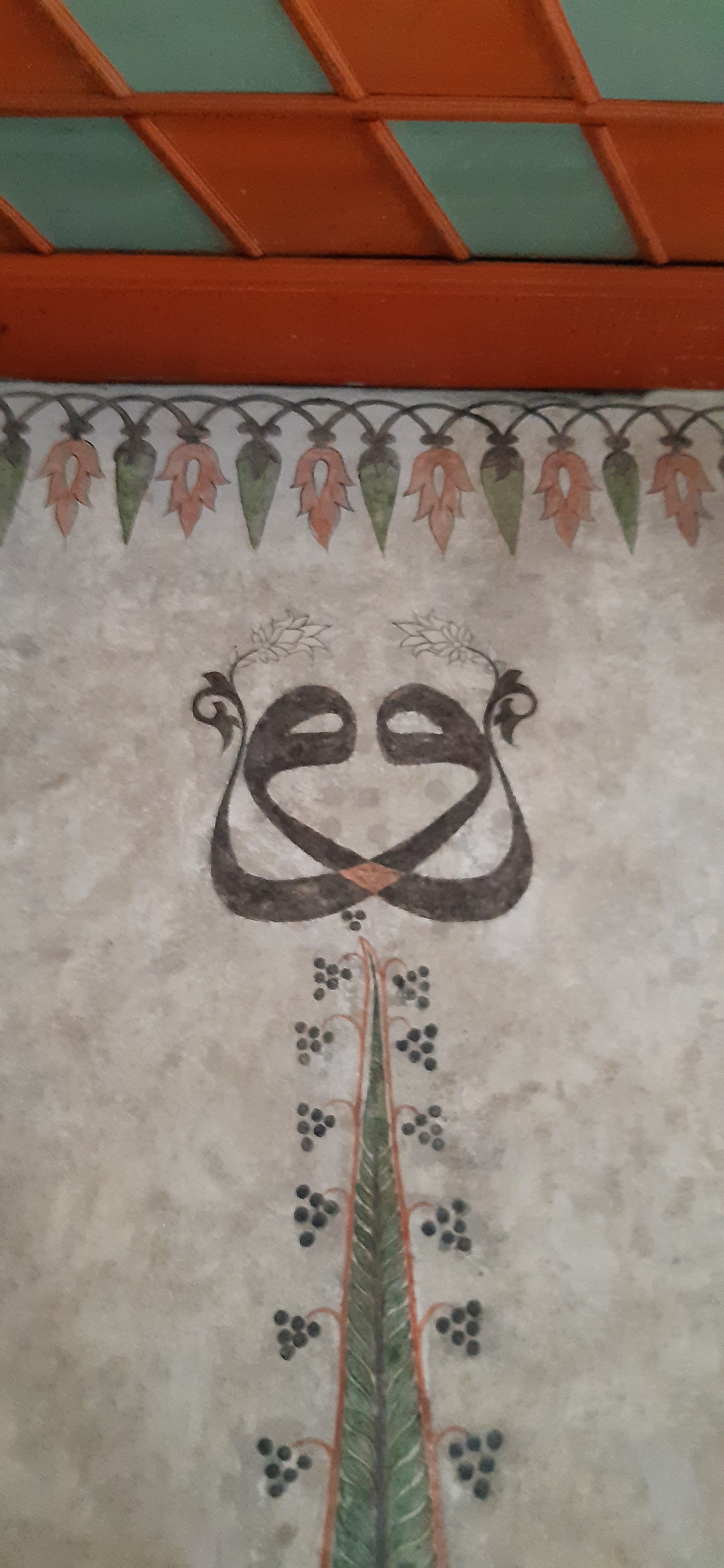 Ascending to the upper floor, in the women’s section, you have an even more complete and fascinating vision of the building. Calligraphic friezes, decorations, and the lovely wooden ceiling painted in shades of green shine in the light coming in through the many windows lining the space.