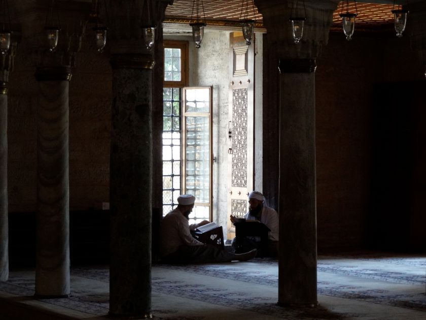 An additional, priceless experience is the one I get when I succeed in sitting in a mosque. The Muslim worship space, being designed not only for worship but also for hosting, favours a serene and contemplative sitting. Mosques in the Ottoman tradition also have carpeted floors, making the experience even more comfortable. Sitting in a mosque you can see scholars reading a Koran on a large bookstall, children running, men sleeping, and families visiting nose to the sky, because the domes, with their symbolic lights, attract attention.