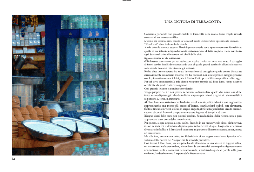 No experience for me is worth more than sitting on an Indian ghat. Here you can have encounters of various kinds, sometimes exciting, such as the one that happened to me in Varanasi, narrated in the book The Spirit of Varanasi (which is founded on this very concept of ‘sitting and observing’), and led me to rethink, thanks to two lassi (the typical Indian drink similar to yoghurt) gluttonous puppies, the concepts of fate, rebirth and the cycle of lives.