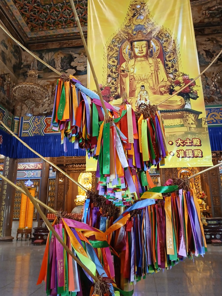 In realtà sono un’espressione rispettabile e interessante di una cultura religiosa e visiva diversa, forse un po’ kitch ma chi ha stabilito che le espressioni della fede debbano essere per forza raffinate? E quale sarebbe il criterio universale di tale raffinatezza? Come insegna la grande statua della compassionevole Guanyn, raggiungibile anche in funicolare, che domina il complesso, ognuno ha il proprio modo di approcciarsi al divino.