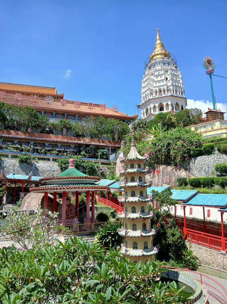 Alto su una collina che si raggiunge con una piccola camminata, Kek Lok Si è un grande e pittoresco tempio buddista, il più grande della Regione, fatto di padiglioni, scale, passaggi, gallerie e giardini fioriti popolati da migliaia di sculture, teste di drago, ghirighori floreali ed è un altro dei “must to see” a Penang.