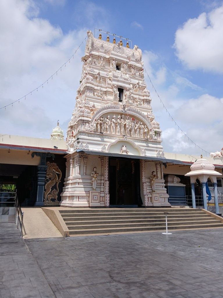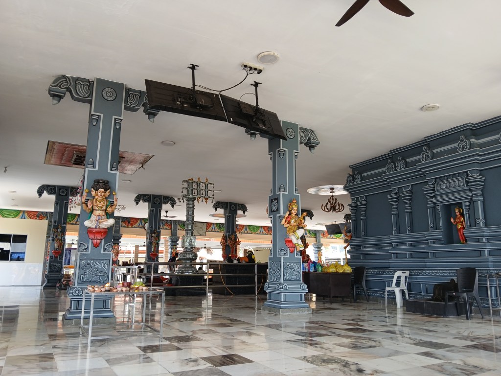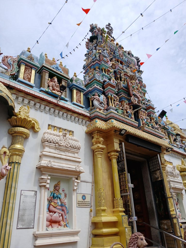 Lo stile dei templi indù è invece inequivocabilmente (fortunatamente direi vista la mia passione per il mondo dravidico) link quello tamil del sud dell’India. I loro gopuram, le tipiche torri/porte, non sono ovviamente maestosi come a Madurai o Kanchipuram link ma sono comunque spettacolarmente decorati da centinaia di piccole figure, talvolta dipinte, talvolta bianche. Gli interni, aperti e luminosi, con immacolati pavimenti, invitano a sedersi e a riflettere, magari ascoltando canti o una lezione di musica sacra impartita da un venerabile maestro a giovani membri della comunità locale.